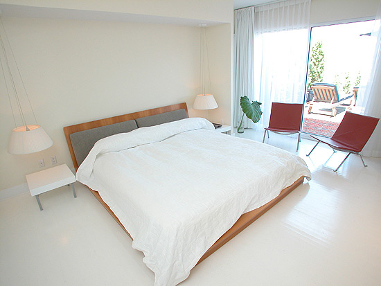 Design worthy of the modern monk, this austere bedroom has its own access to another large terrace.