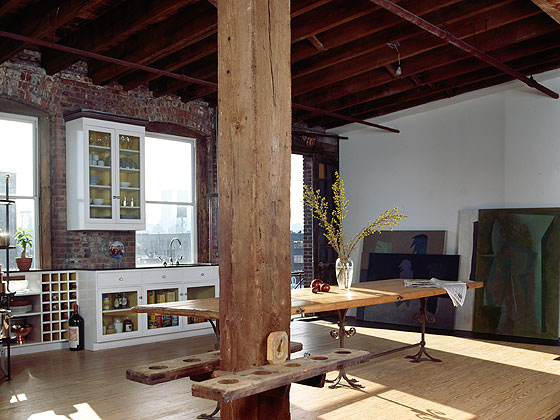 The spacious open kitchen features a 1925 bistro table that seats 16 people. The client liked to cook.
