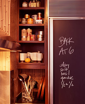 Using every nook and cranny and cladding appliances with chalkboard are Ochs Design signatures.
