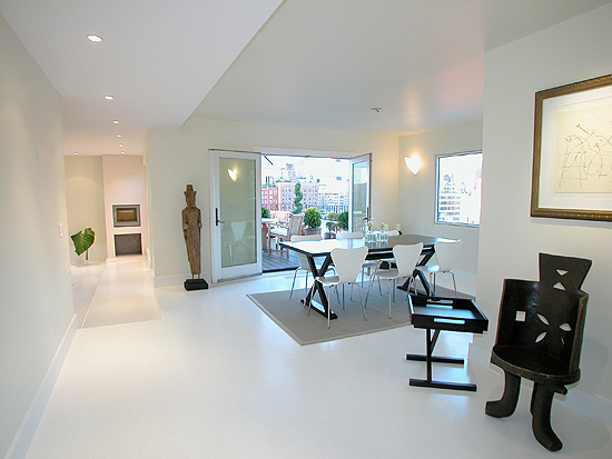 New structural steel replaced former load bearing interior walls, creating views from the foyer to the interior and exterior dining areas. Adding a fireplace on axis with the front entrance enhances an already dramatic experience.